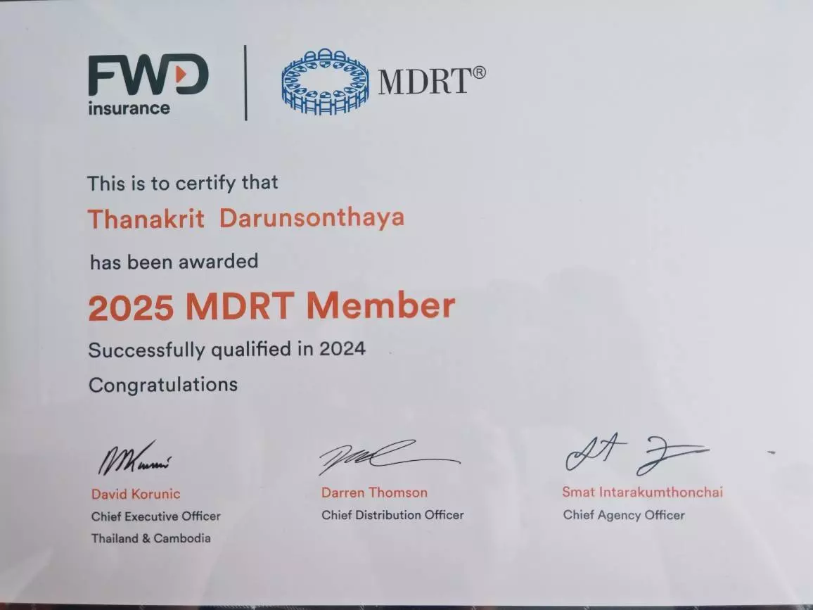 📌 ทำไมคุณวุฒิ MDRT ถึงสำคัญ?✅ เป็นเครื่องหมายแห่งความสำเร็จMDRT เป็นมาตรฐานสูงสุดของตัวแทนประกันชีวิตและที่ปรึกษาทางการเงินระดับโลก แสดงถึง ศักยภาพ การทำงานอย่างมืออาชีพ และความสามารถในการสร้างยอดขายที่มั่นคง✅ สะท้อนความเชี่ยวชาญและจริยธรรมผู้ที่ได้รับคุณวุฒิ MDRT ต้องปฏิบัติตามหลักจรรยาบรรณที่เข้มงวด ให้คำแนะนำแก่ลูกค้าอย่าง ซื่อสัตย์ โปร่งใส และคำนึงถึงประโยชน์สูงสุดของลูกค้า✅ ช่วยสร้างความเชื่อมั่นให้กับลูกค้าลูกค้าสามารถมั่นใจได้ว่าการได้รับคำปรึกษาจากตัวแทนที่มีคุณวุฒิ MDRT คือการได้รับคำแนะนำจากมืออาชีพที่มีความรู้ ความสามารถ และให้บริการในมาตรฐานระดับโลก✅ โอกาสในการพัฒนาและเรียนรู้สมาชิก MDRT ได้รับสิทธิ์เข้าร่วมสัมมนาและเครือข่ายของที่ปรึกษาทางการเงินระดับแนวหน้าทั่วโลก ทำให้สามารถเรียนรู้ กลยุทธ์ เทคนิค และแนวคิดใหม่ๆ เพื่อพัฒนาตัวเองให้เก่งขึ้นอยู่เสมอ✅ เพิ่มโอกาสความก้าวหน้าในอาชีพตัวแทนที่มีคุณวุฒิ MDRT มักได้รับการยอมรับและมีโอกาสเติบโตในสายอาชีพได้รวดเร็วกว่า เนื่องจากเป็นเครื่องหมายของ ความสามารถและความสำเร็จที่เป็นรูปธรรมMDRT ไม่ใช่แค่ยอดขาย แต่เป็นมาตรฐานของความเป็นมืออาชีพ ความมุ่งมั่น และความใส่ใจในการดูแลลูกค้า สนใจสอบถามรายละเอียดเพิ่มเติมเพื่อความรวดเร็วในการให้บริการกรุณากรอกรายละเอียดให้ครบถ้วน เลือกความสนใจ *สนใจแบบประกันสนใจสมัครตัวแทน FWDเลือกผลิตภัณฑ์ที่สนใจ *ประกันสุขภาพเด็กเล็ก(อายุ0-5ขวบ)ประกันสุขภาพเด็กโต (อายุ6ปีขึ้นไป)ประกันสุขภาพสำหรับวัยทำงานประกันชีวิตคุ้มครองและสร้างมรดกประกันชีวิตเพื่อลดหย่อนภาษีประกันชีวิตเพื่อทุกคนในครอบครัวประกันโรคร้ายแรงประกันมะเร็งประกันอุบัติเหตุส่งข้อความ ข้อมูลของท่านจะถูกเก็บเป็นความลับ กรุณากรอกรายละเอียดให้ครบถ้วน*** ข้อมูลของท่านจะไม่ถูกเปิดเผยสู่สาธารณะ